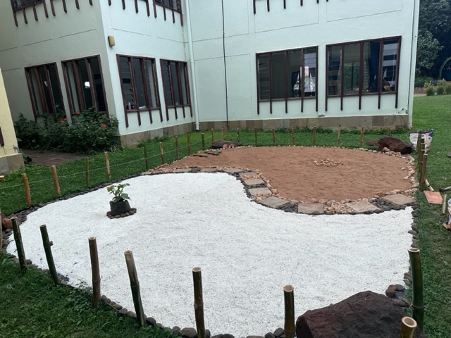 We decided to build a zen garden, taking our inspiration from the Japanese zen garden. We designed the garden ourselves with the help of our school gardener and our teacher.