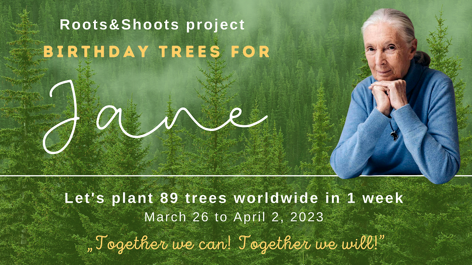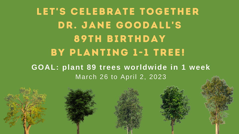 Let's celebrate together Dr. Jane Goodall's 89th birthday by planting 1-1 tree!