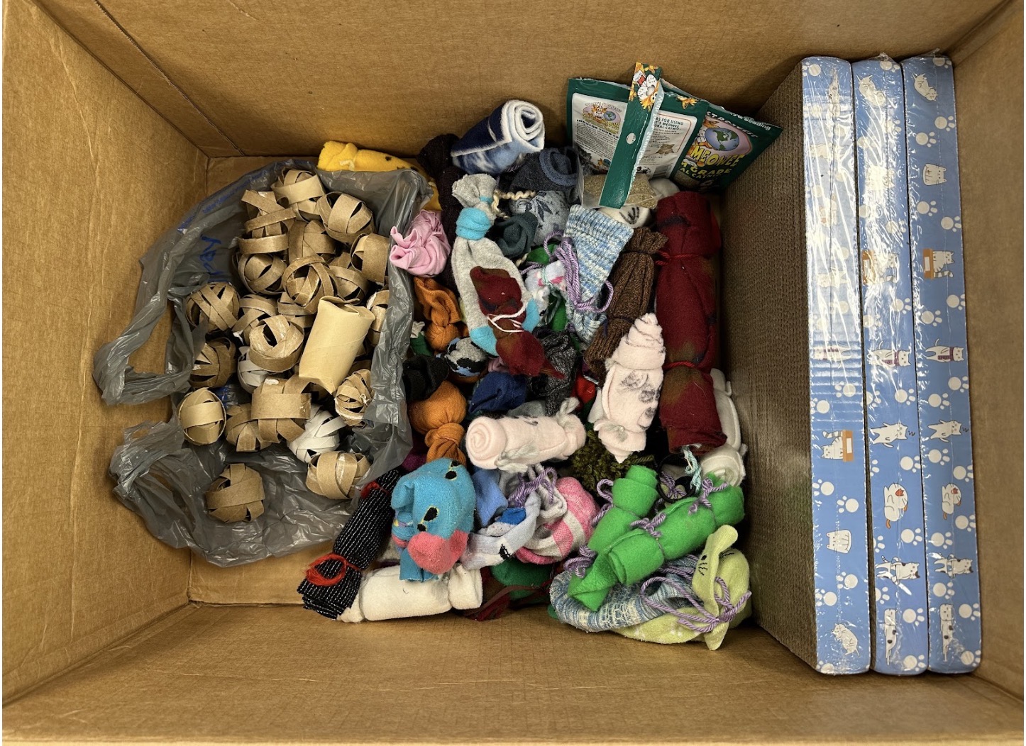 we contacted animal protection Society of Durham. We asked them what the animals there needed. They sent us instructions on how to create DIY cat toys. We collected the supplies and made the cat toys. We are donating them to the shelter.