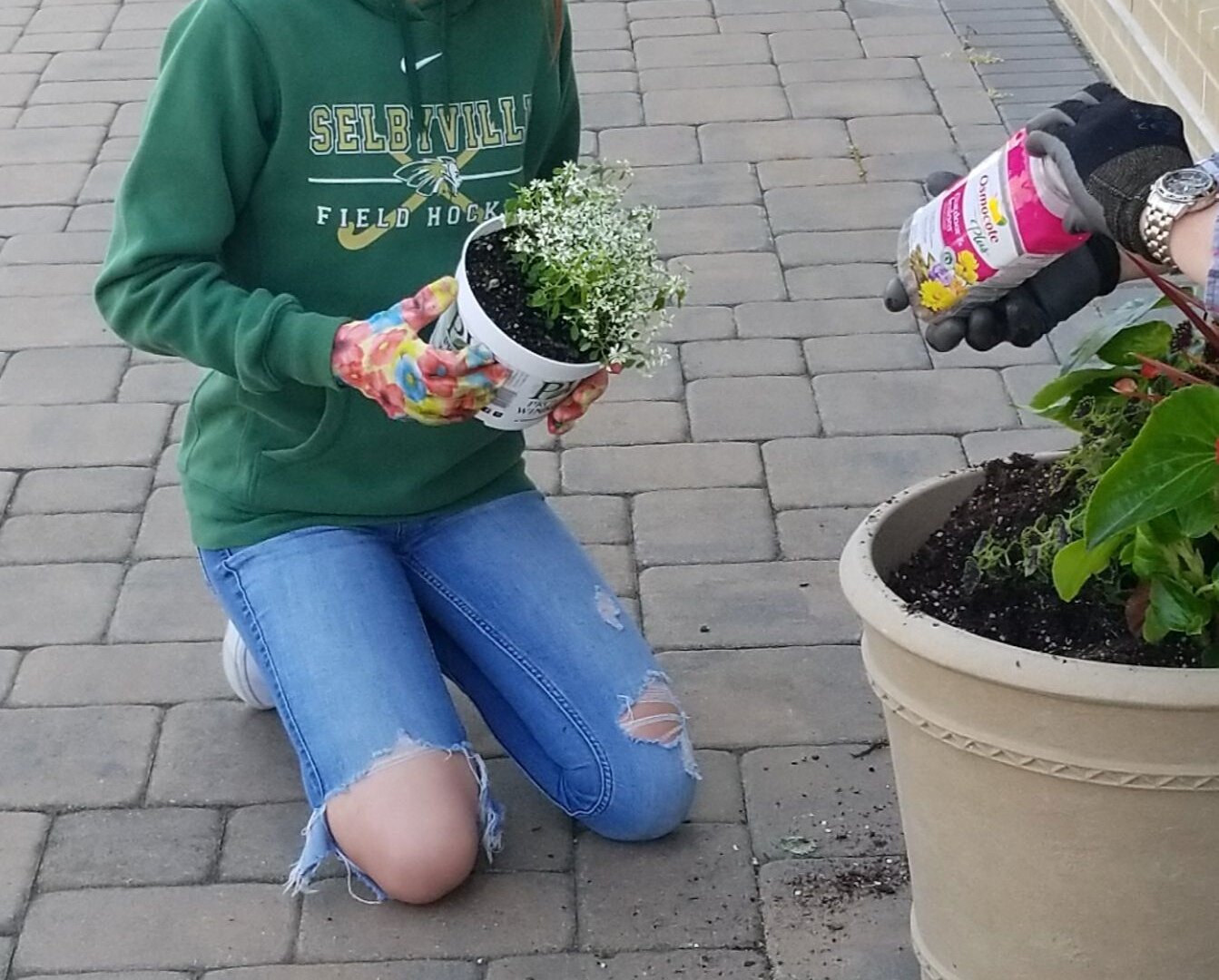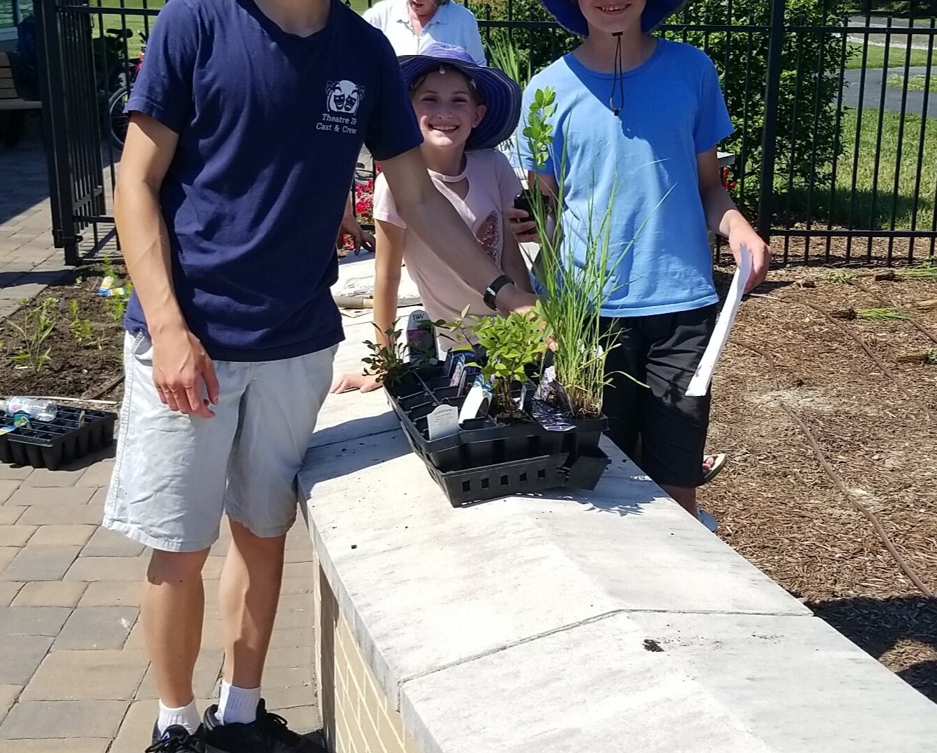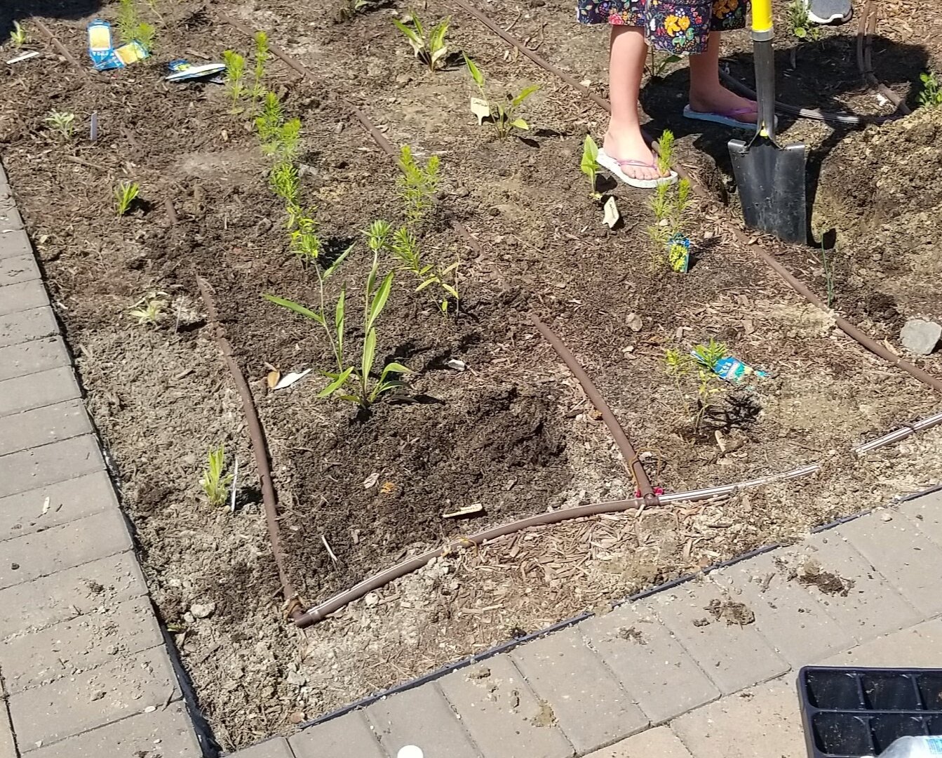 Together we planted over 150 native plants on the library's patio to nurture pollinators. Installed a birdbath, feeders, and houses for the birds.