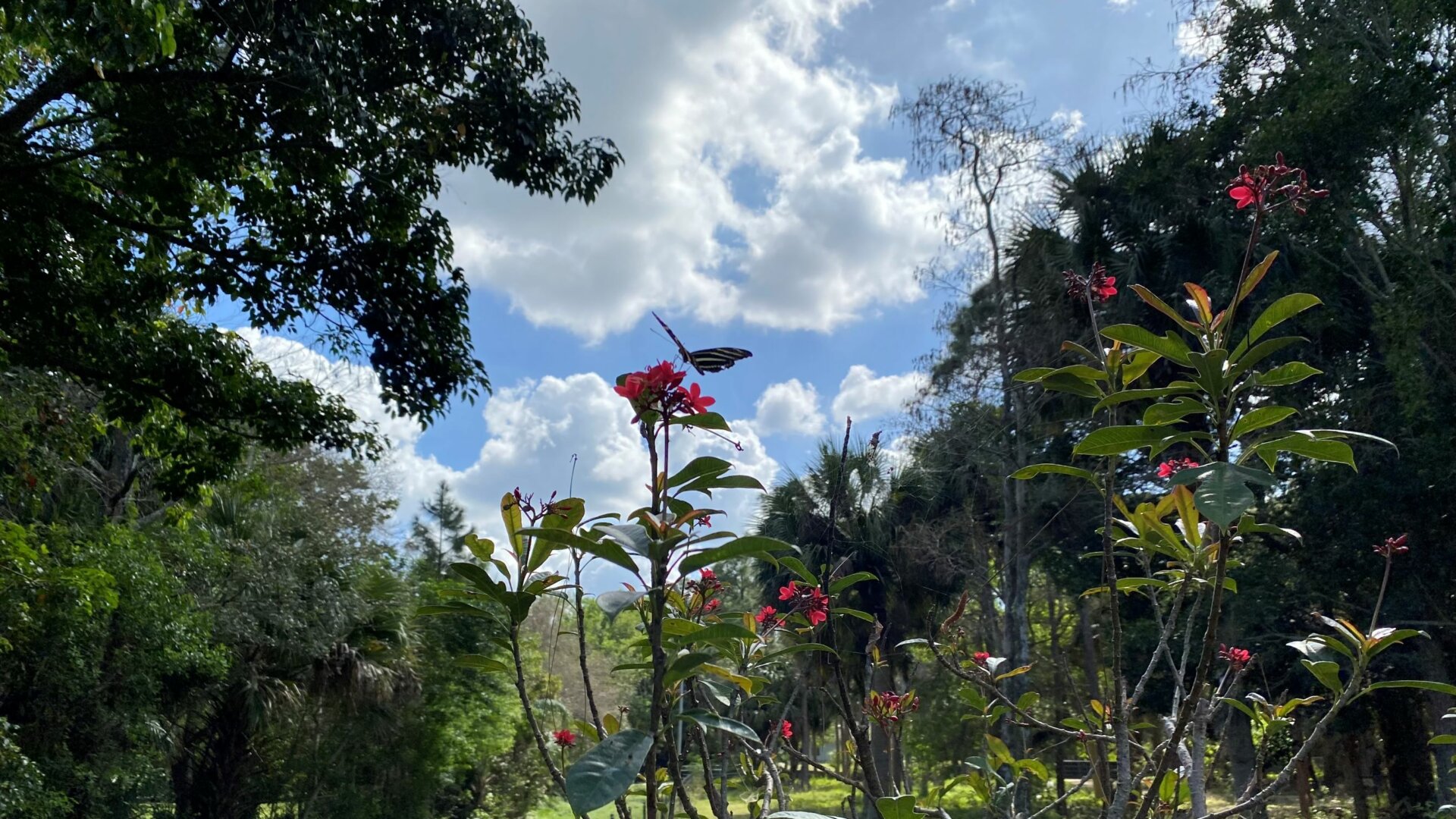 Create a butterfly habitat with the following items: native butterfly friendly plants, butterfly puddling area, butterfly house, create an area with tall grass, fallen leaves, and trees, and eliminate use of chemical pesticides and fertilizers, use compost.