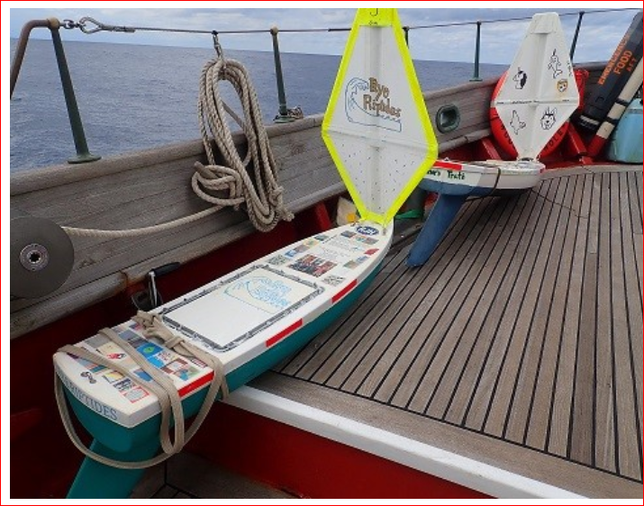 We will build a sail boat that has GPS tracking and temperature probes that measure the air and water temperature as the sail boat crosses the sea. This boat will create a data set that we can study. We pray the boat will cross the equator and head to Kiribati, but perhaps it will get caught in the Gyre like all the plastic pollution and sail in a circle for 7 or 8 years. Both could generate student interest in the garbage patch and in the role of wind and ocean currents in the accumulation of pollution.