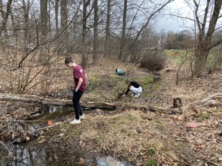 Students have been working with naturalists, engineers and a geologist to research, design and install a rain garden on campus. Students are also clearing invasive species of plants and trees along a stream and wooded area on school campus. Students will then plant native plants in their place.