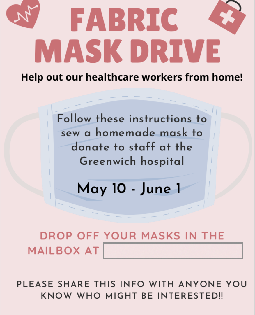 We are organizing a fabric face mask drive to collect masks to donate to the Greenwich hospital. We've compiled resources and reached out to many members of the community to spread the word and collaborate on this project!