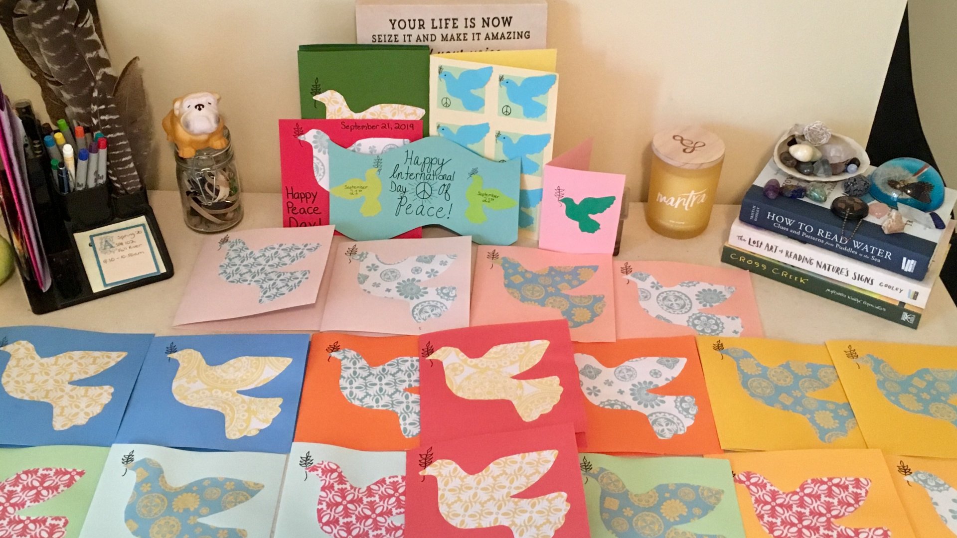 Over the next few weeks I will be making cards and decorations in honor of the International Day of Peace. They will include peace doves, quotes about peace, and facts about the International Day of Peace. About a week before the International Day of Peace, I\\\'ll deliver the cards to my local hospice center so that the patients in hospice care receive their cards in time for September 21st!