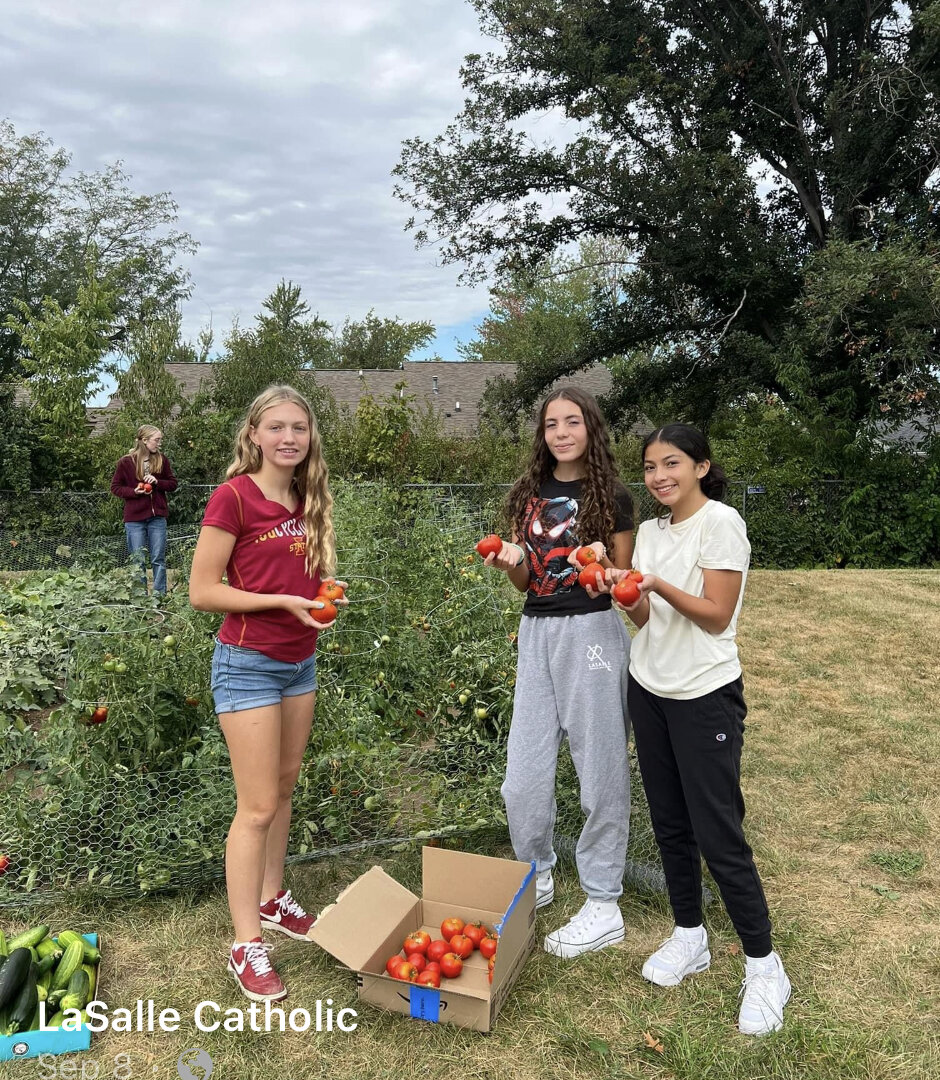 The goal of the LaSalle project was to provide fresh produce to a severely food insecure student body and their families. A secondary goal was to teach them how to garden so if they have the resources in the future they will have the knowledge to be able to grow fresh produce for themselves. The students chose a garden site in May and then planted the garden. The weather was very dry and the plot needed to be watered often. There was some nongermination due to the dry weather and lack of water at first. Enough hose was finally obtained to be able to maintain water to the garden. A couple of greenhouses were generous in late June and early July to sell us very reduced vegetables that we were able to place in the garden in places that we had already harvested from or were bare because of the dry weather. The funds received from the grant were used to purchase seed, plants, and fencing supplies to keep the rabbits out of our garden. The produce that was picked was given to the families of the LaSalle Catholic School. The lettuce and radishes were first distributed to the families when they picked their children up from childcare and then at an event called Popsicles in the Parking lot. Beginning in August the produce that was being harvested was set out for families to pick up once or twice a week. It was posted on the school website what was available and when it would be available for pick-up. Students helped to weed and care for the garden learning how to place tomato cages around the tomatoes and how to keep our vine plants within the garden fence. We were able to provide families with the following produce: lettuce, radishes, cucumbers, zucchini, green peppers, jalapeno peppers, spinach, yellow and red tomatoes, green and yellow beans, egg plant, cabbage, broccoli, beets, and carrots. Not all of the beets and carrots were taken immediately so I canned them and families have been picking up the canned vegetables when they need them.
