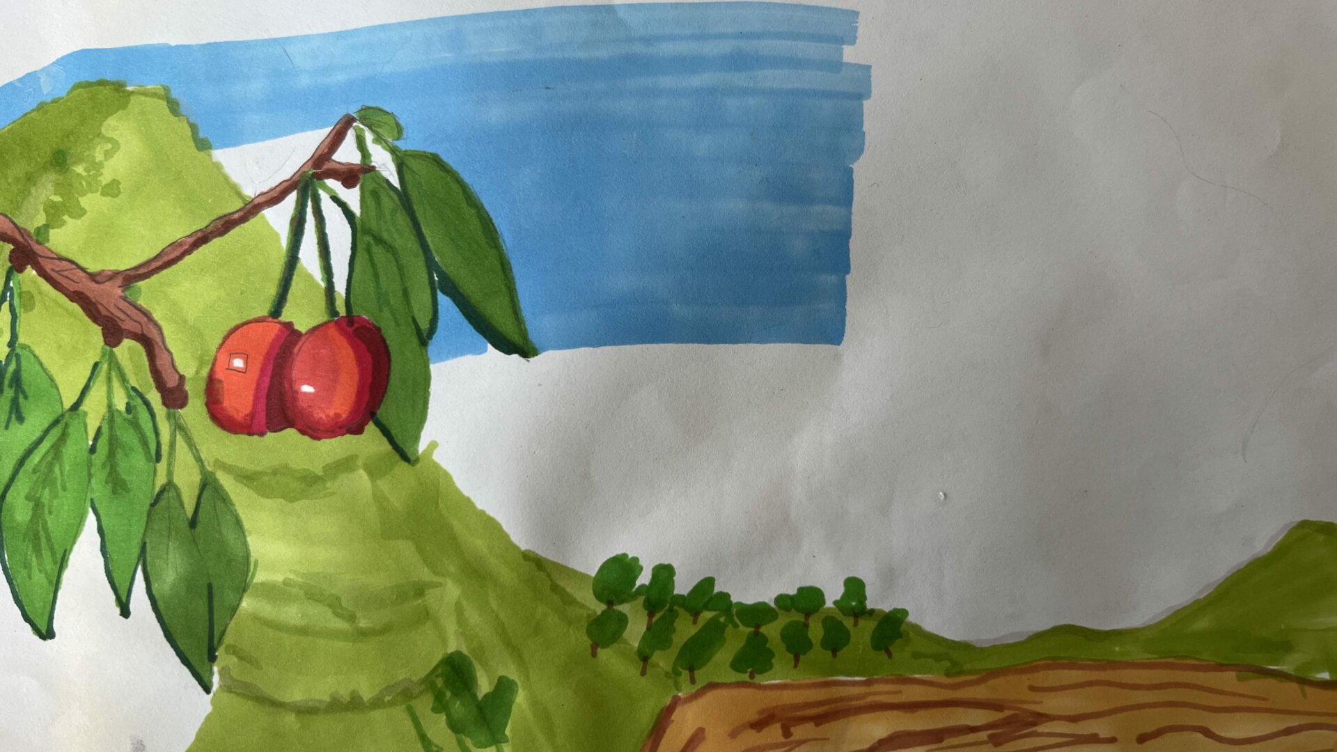 Paw Paw’s (Grandma’s) favorite part of this project was seeing how excited Tyson was to receive his tree on his birthday. He was so happy when his friends all pitched in to help him carry the tree into the backyard. Tyson couldn’t wait to try out his brand new set of ParKoo art markers to add some eye-popping color in his drawing — some nice red cherries for his story!