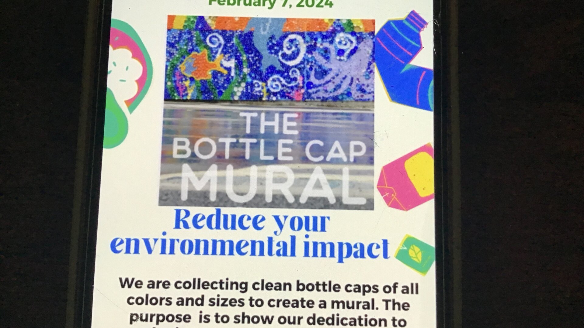 We are planning on creating a mural using recycled bottle caps.