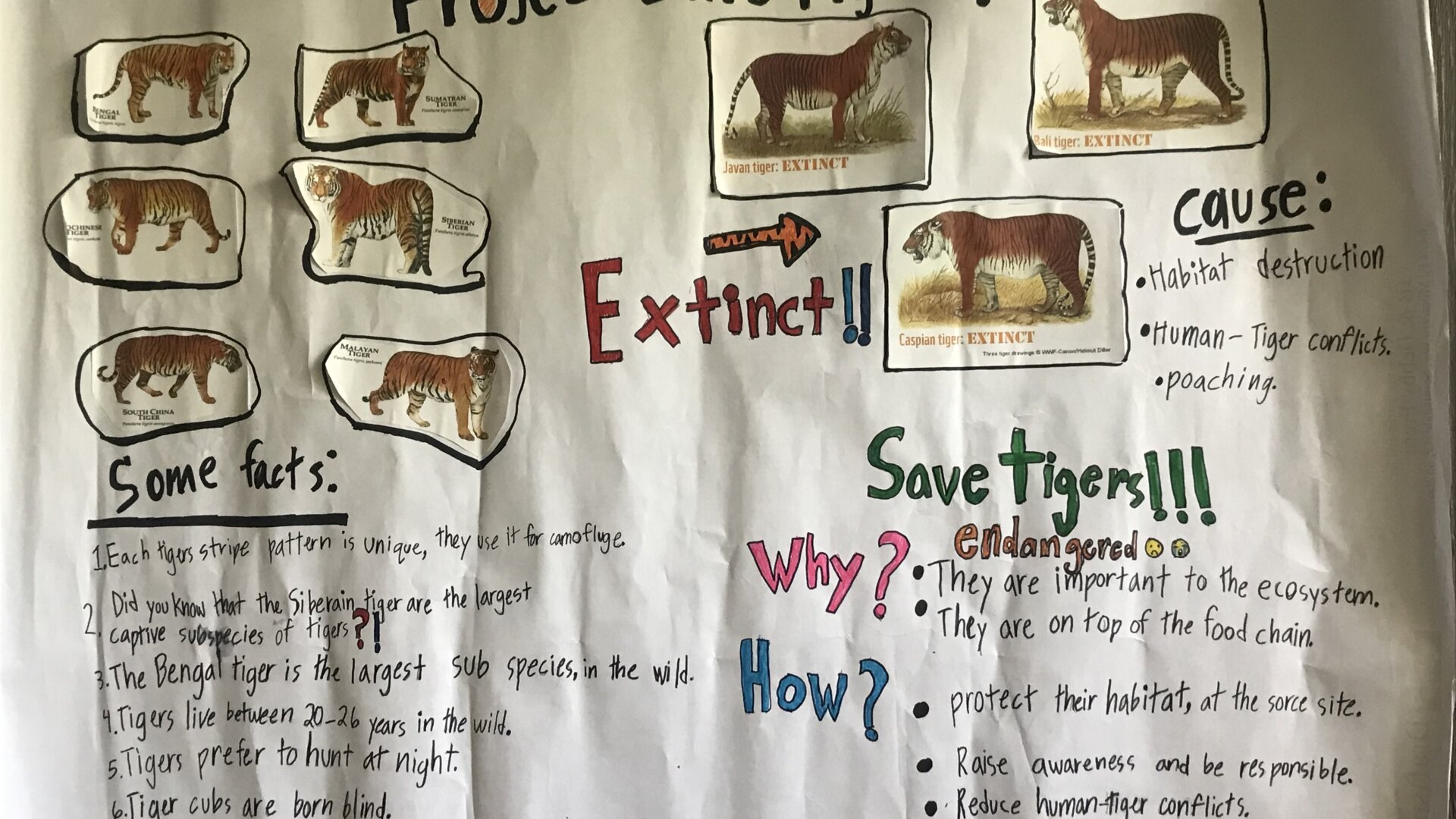 Educate students and within the community about different tiger species. Talk about how human tiger conflicts, poaching and habitat dstruction has led to extinction of 3 of the tiger sub species. Educate why saving tigers is important for our future and bio diversity. Use creativity to raise awareness and raise funds to save tigers or adopt a tiger on WWE.