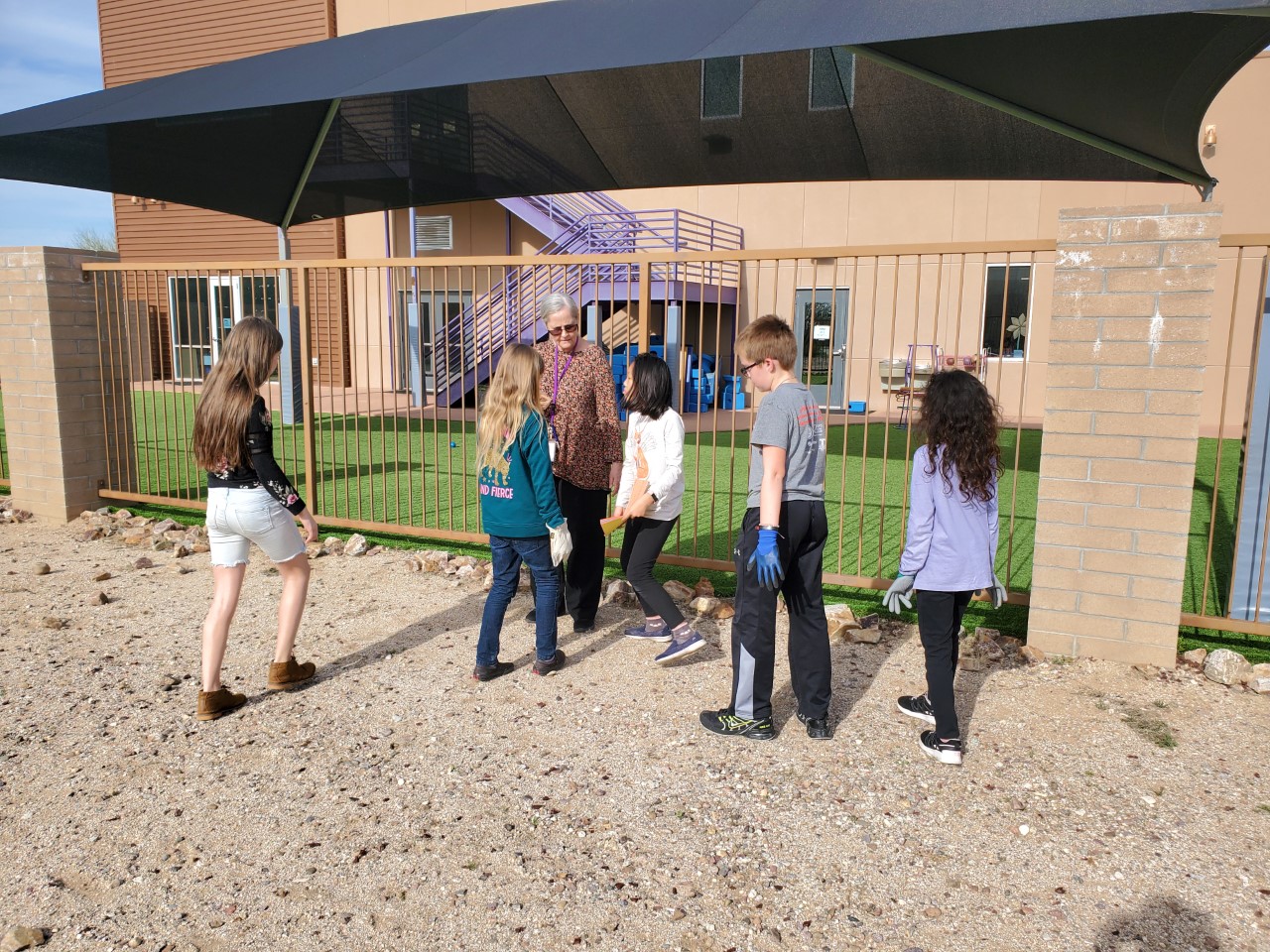 The goal of our project is to clean up the trash surrounding our school. Recently, there was some construction work in the lot near our school, and the construction crew left behind a large amount of debris: scrap metal, plastic bags, etc. By cleaning up the trash in the nearby lot, we not only protect the younger kindergarteners who line up for fire drills in the same lot, but we also help protect the desert wildlife, creating a more aesthetic and pleasing environment for us as well.