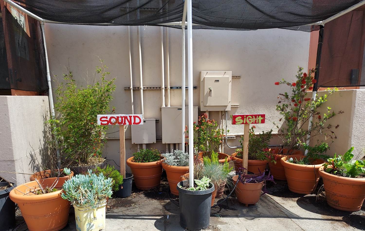We are refurbishing the Sensory Garden by cleaning up the area, replacing and adding plants and containers in the different sections, adding signs, repairing broken drip irrigation systems, and repairing the shade structure.