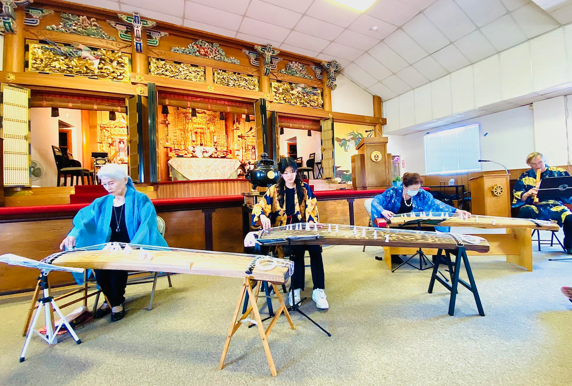 My teacher, a fellow student, a Shakuhachi player, and I gave a talk about our traditional instruments (Koto and Shakuhachi) from Japan as well as performed at the Buddhist Temple in San Diego.