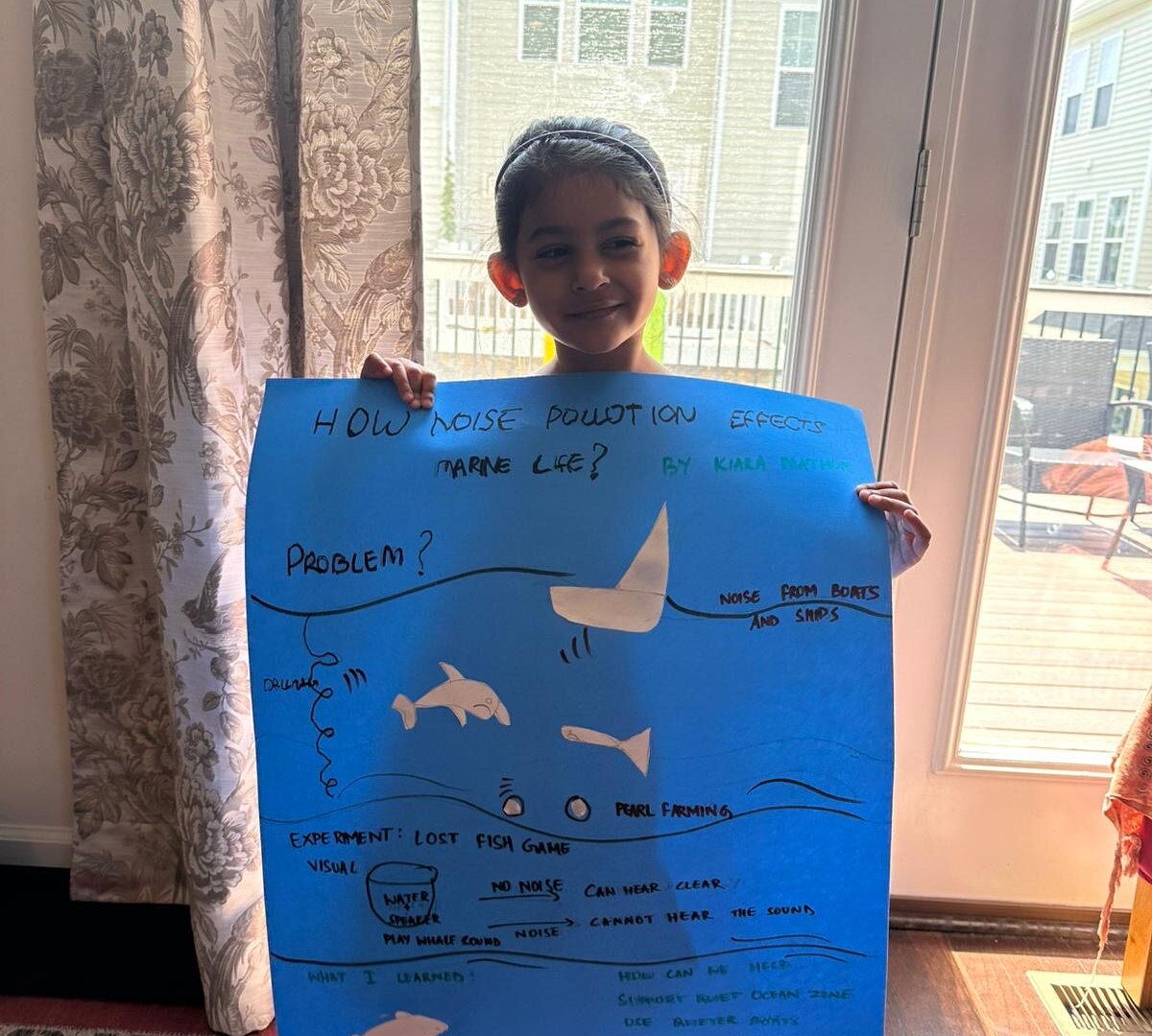 Building on our U.S. Presidential Environmental Youth Award project The Ocean Has a Voice, we are inspiring young people to protect the ocean and our planet. We want to begin with small, achievable steps that create awareness and spark change: 1. Interactive Experiment at School – demonstrate how sound travels underwater using simple materials (like tuning forks, bowls of water, or speakers in water tanks) so children can “see” and “hear” the effects of noise. 2. Awareness Posters & Storytelling – design creative posters and a short storybook from a whale’s perspective (“The Ocean Has a Voice”) to share at school, libraries, and community centers. 3. Community Pledge – invite families to sign a pledge to reduce ocean harm (less single-use plastic, quieter ocean tourism, supporting marine-safe companies). 4. Partnerships with Local Aquariums – reach out to aquariums to display our posters or host a talk on underwater noise. 5. Digital Awareness Campaign – create short videos or reels that explain noise pollution in simple terms and share them on Roots & Shoots and social media.