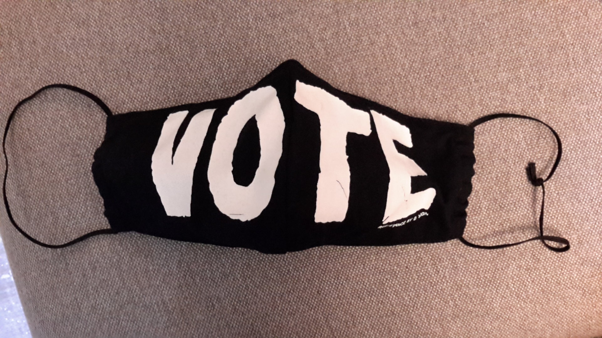 I got a face mask that says VOTE and I am riding my bike around the city every day.