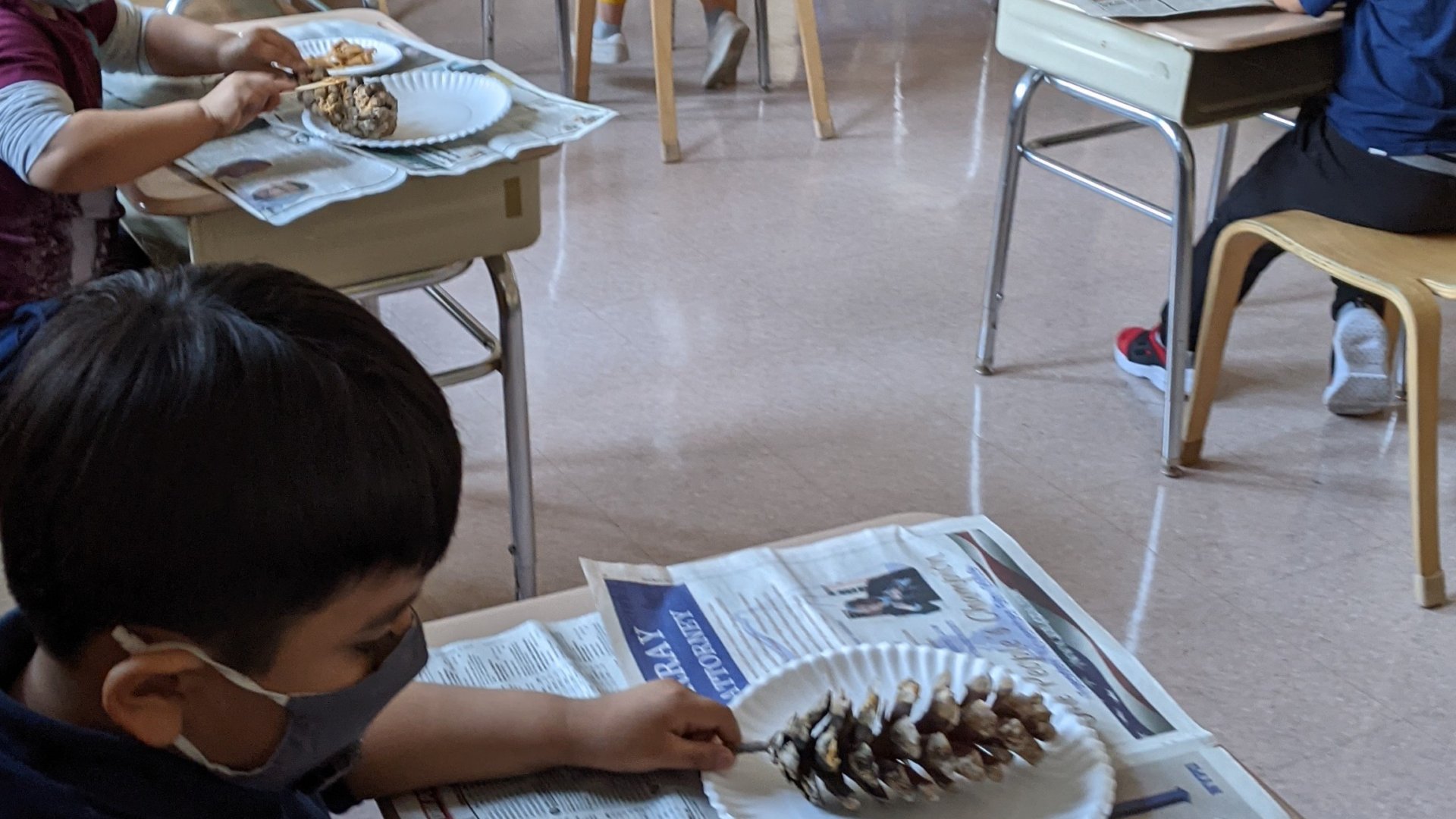 We will use local pinecones to make peanut butter and birdseed feeders to help birds find healthy food.